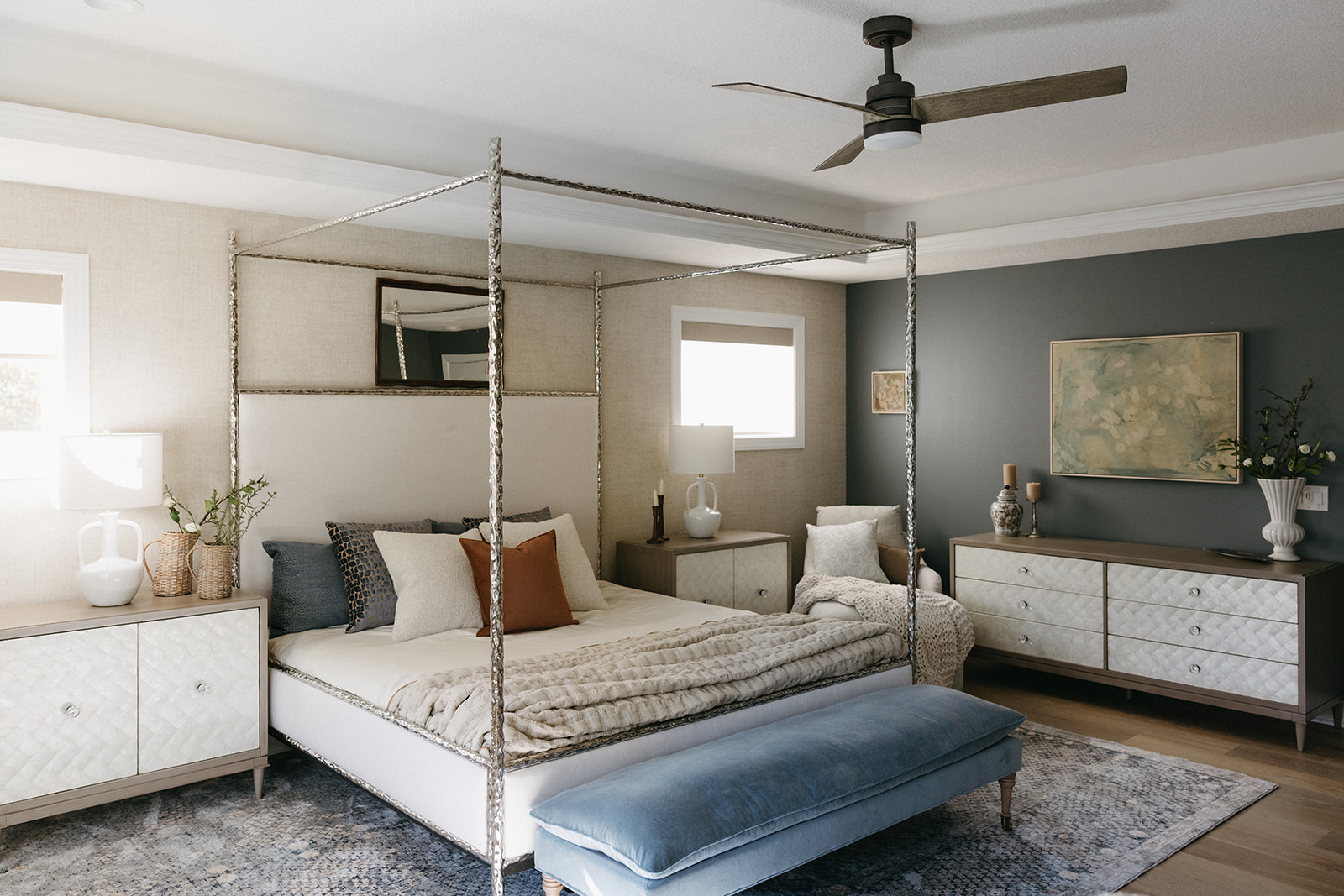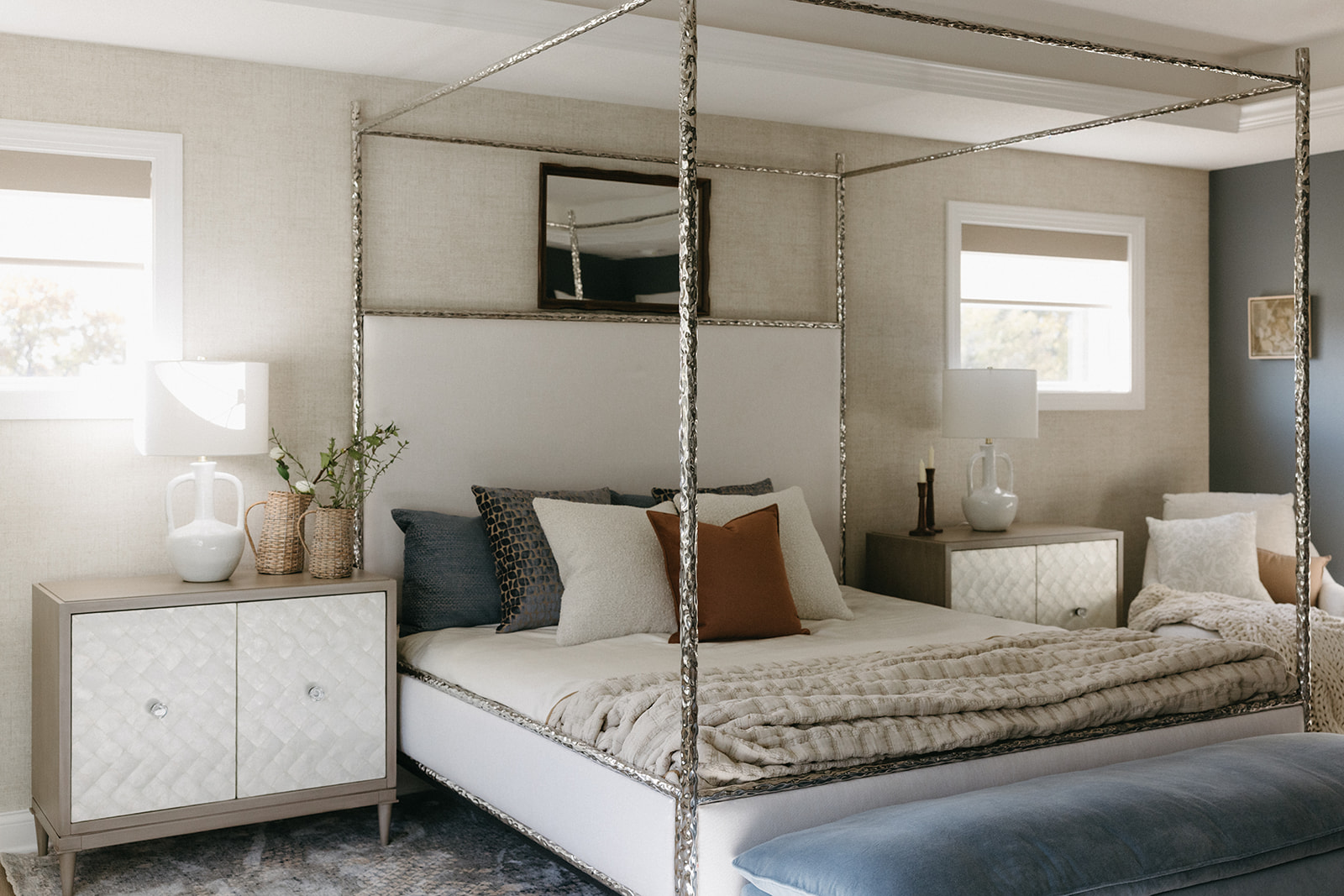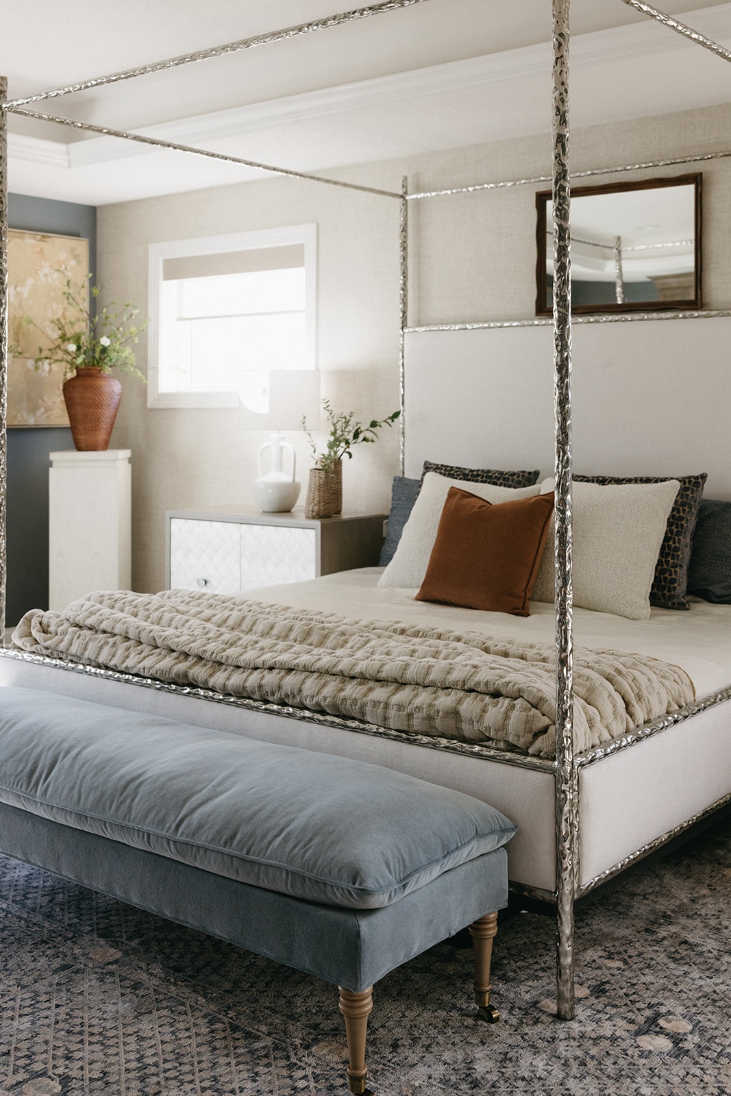 This remodel and furnishings project transformed this bedroom into the prettiest, softest sanctuary imaginable. Filled with gentle tones, layered textures, and thoughtful statement pieces, the space feels like a breath of fresh air. Every detail was curated to create a serene, elevated atmosphere, light, airy fabrics, warm natural materials, and artful accents that bring both comfort and character. The result is a soothing retreat that blends modern elegance with effortless coziness, making the room as inviting as it is beautiful.