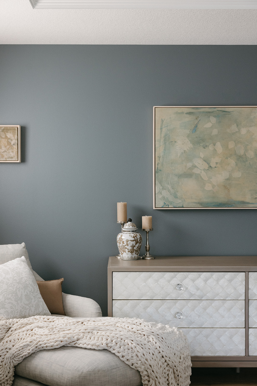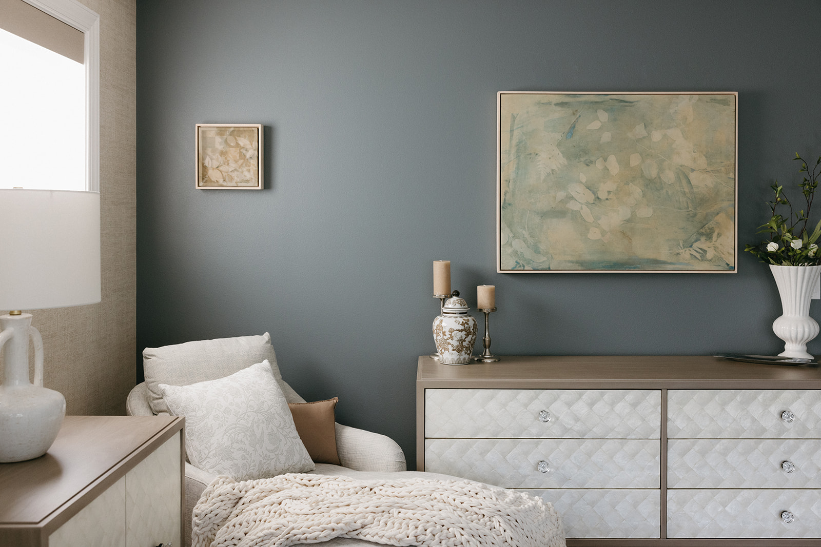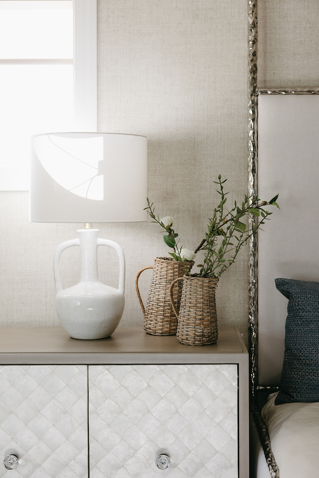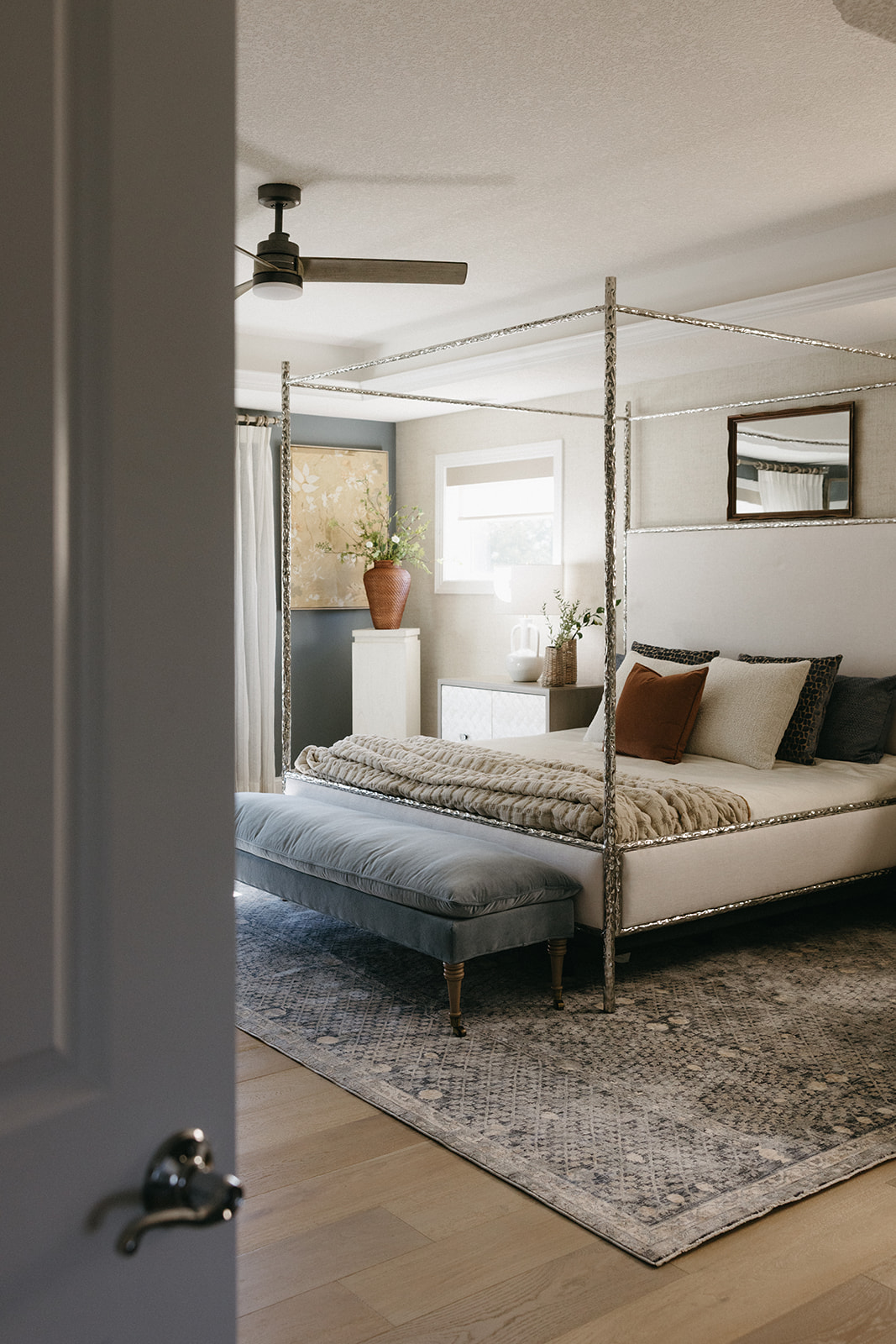 This remodel and furnishings project transformed this bedroom into the prettiest, softest sanctuary imaginable. Filled with gentle tones, layered textures, and thoughtful statement pieces, the space feels like a breath of fresh air. Every detail was curated to create a serene, elevated atmosphere, light, airy fabrics, warm natural materials, and artful accents that bring both comfort and character. The result is a soothing retreat that blends modern elegance with effortless coziness, making the room as inviting as it is beautiful.